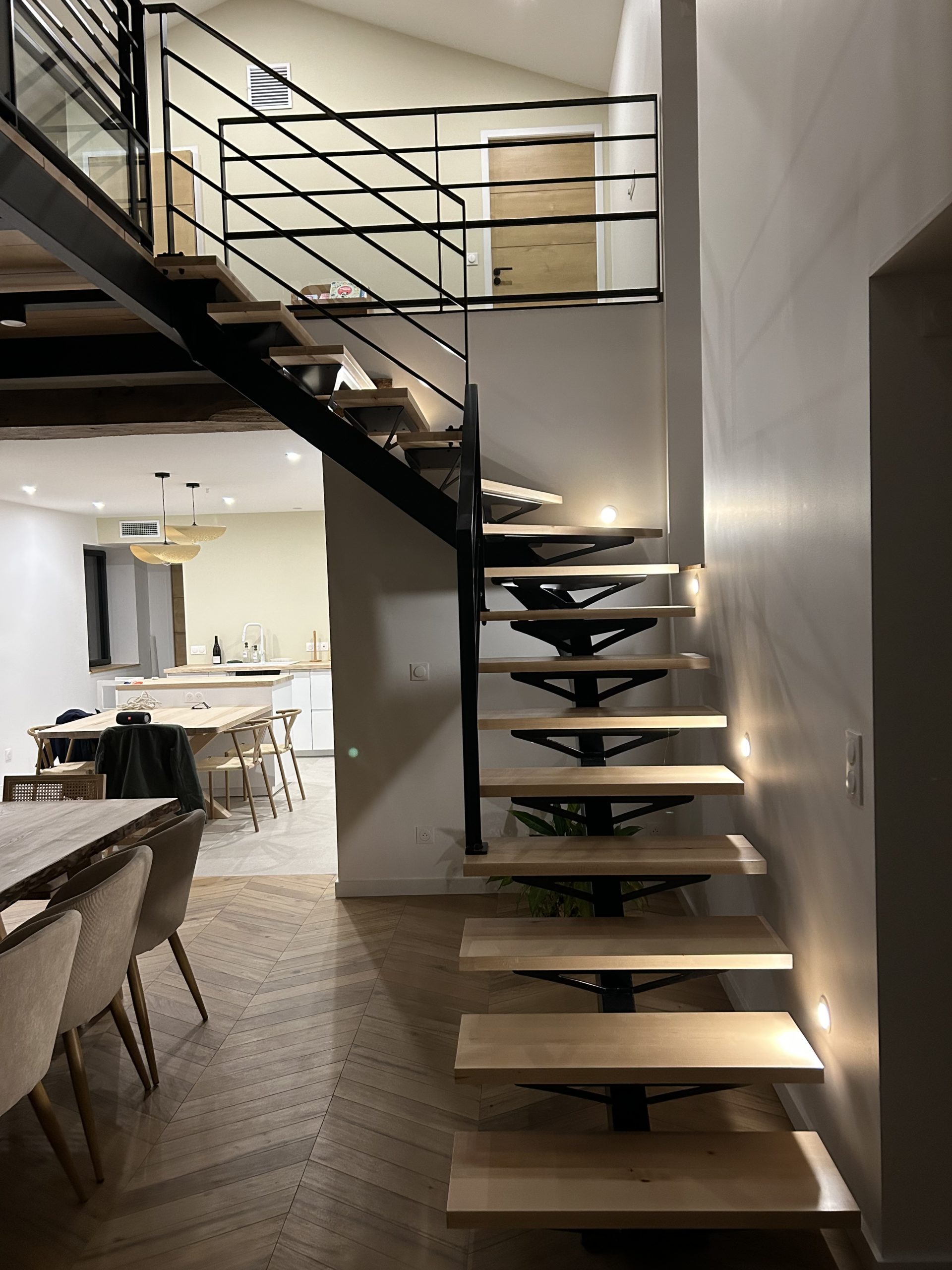 De l’escalier droit, quart-tournant, hélicoïdal, débillardé, en porte-à-faux à l’escalier monumental avec limon central ou traditionnel, des marches en bois, métal ou verre, la métallerie GIROUD s’adapte à toutes vos demandes pour la fabrication et la pose de votre escalier.